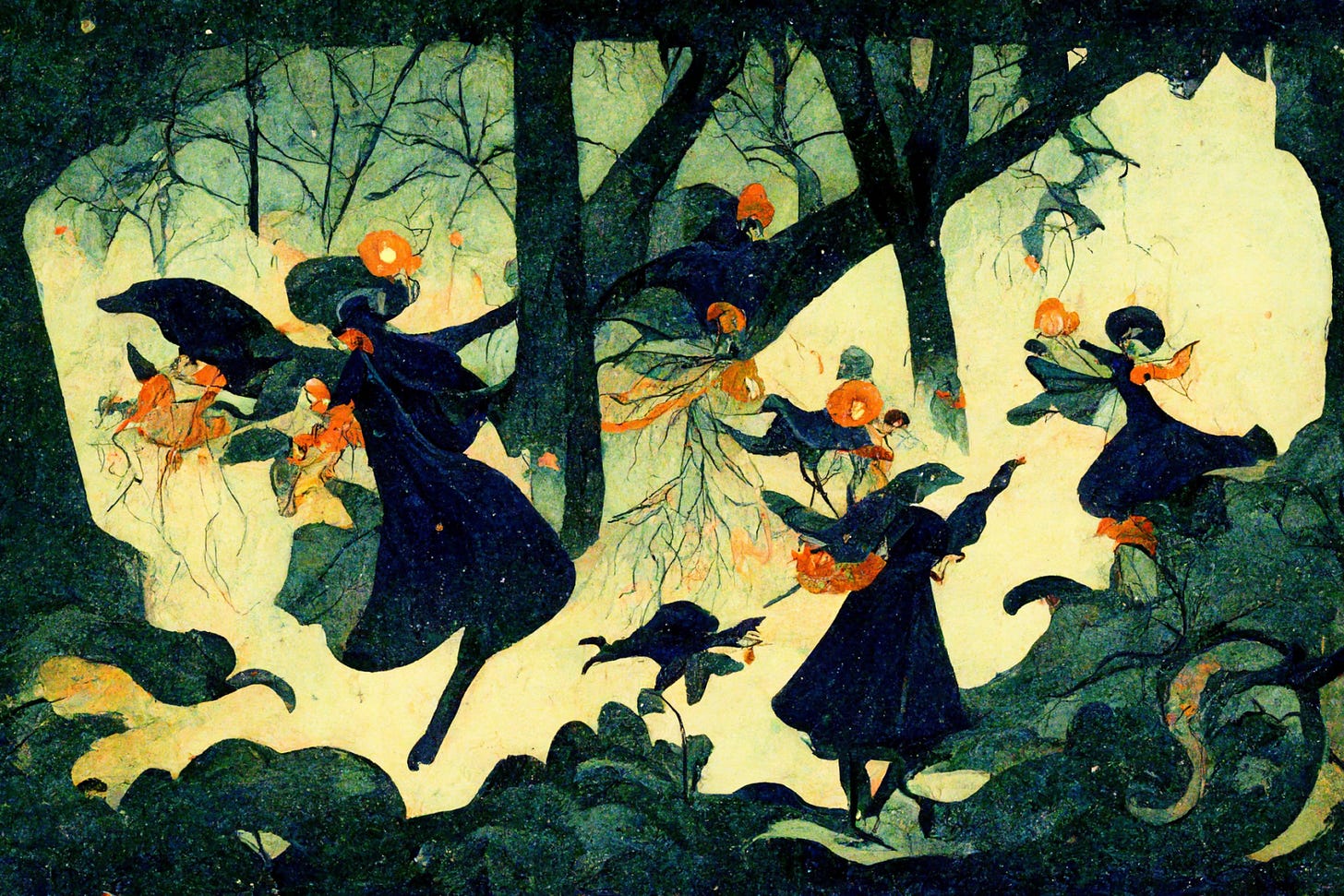They floated down from the trees and the younger ones crawled out of the earth. One or two were dressed as bats. All were giggling and cackling.