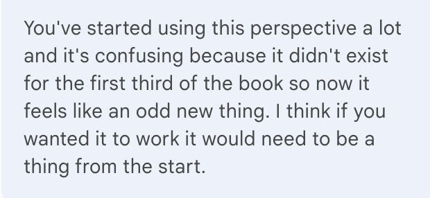 Thanks are owed to many friends who’ve reviewed sections. Incredible thanks go out to my wonderful fiancée, who's put up with my obsession over the last two years and reviewed the entire novel in November. She highlighted some big issues with it around clarity, dropped threads, and the protagonist's competence. I owe her forever.