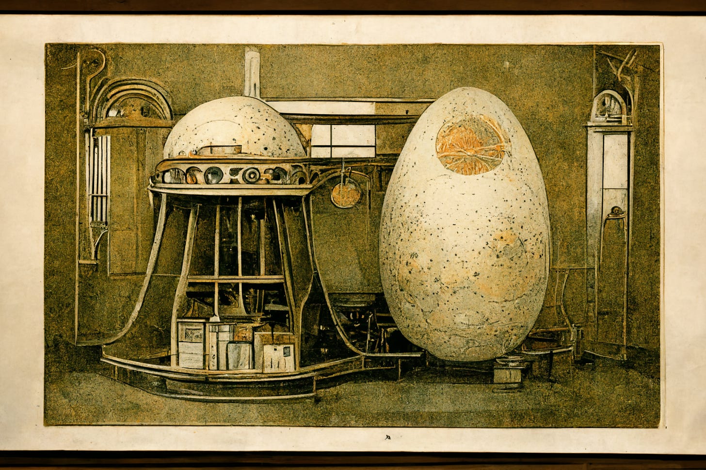 "The culprit in all status disorders," he says, "is a small portion of the brain that we have only come to understand in recent years. This portion, a cluster of neurons, tracks one’s place in the great web of semiotics, but it can become abnormally dampened or enflamed." As he talks he prepares his machine, which is like an enormous egg in the corner of the room. After his patient lifts himself (for it is nearly always a man disordered) into it the doctor turns off even the dim light in the room. It is a pleasant machine, the kind that makes one so comfortable that one realizes he prefers it to standing. It serves as examiner and in the next session it will serve as surgeon.